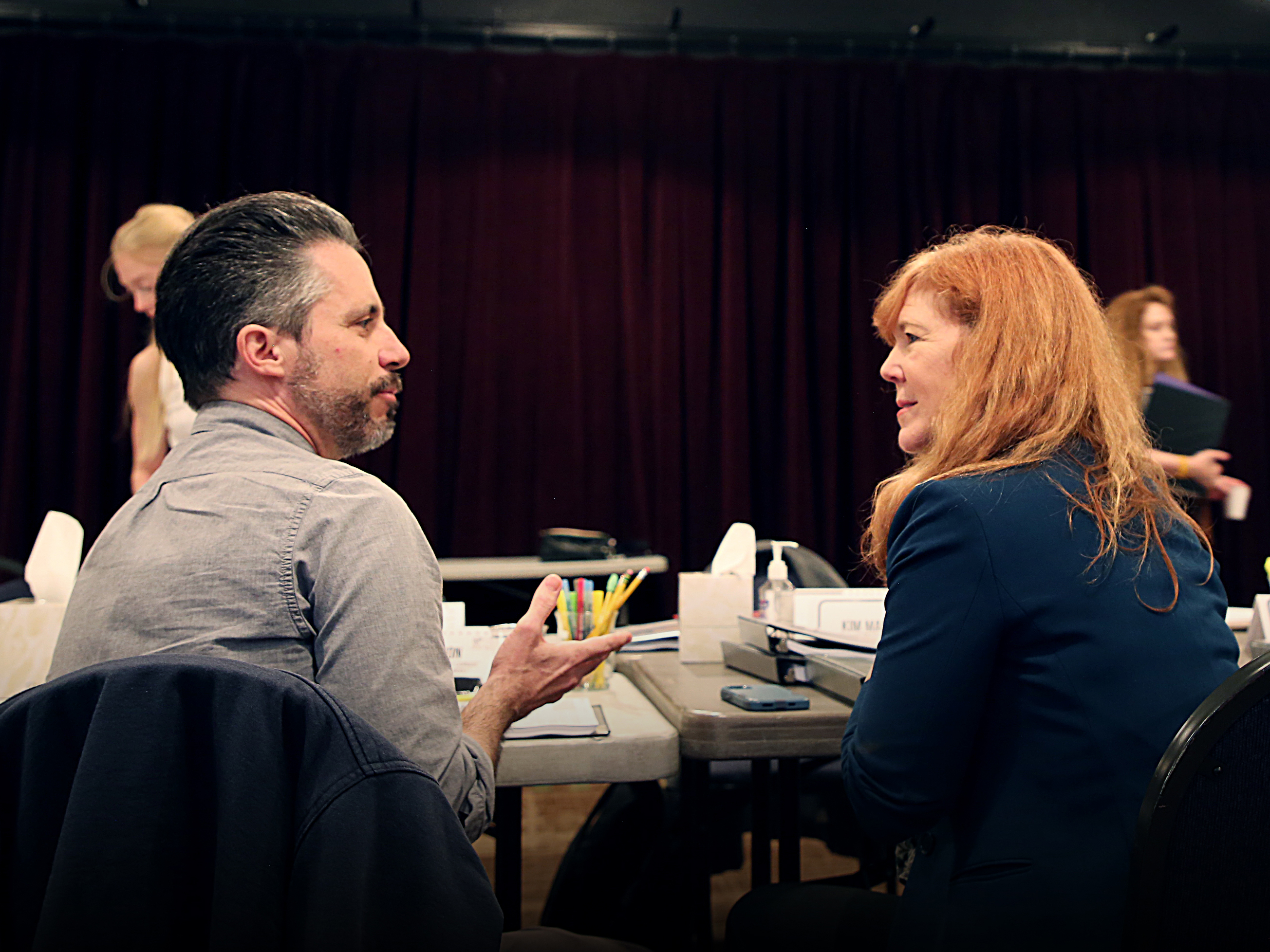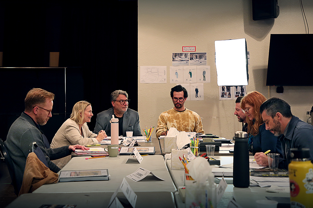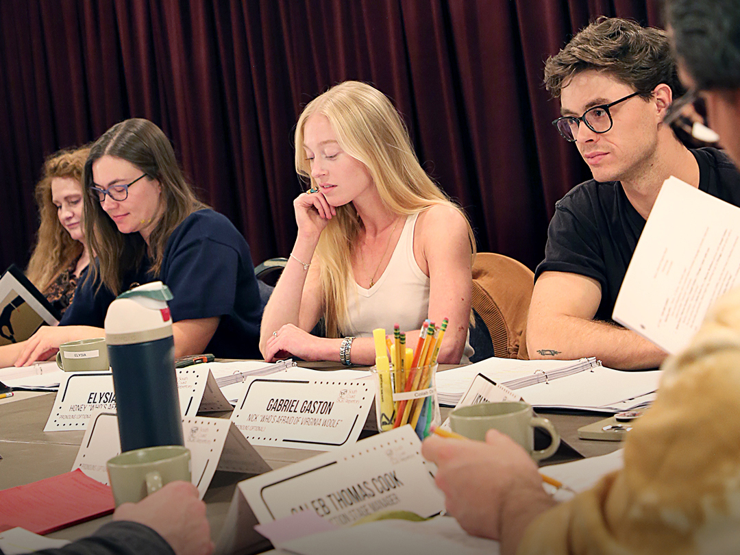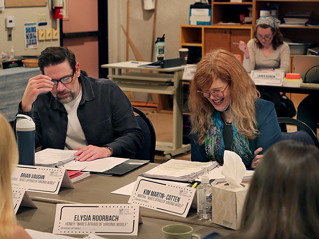 In Rehearsal: Who's Afraid of Virginia Woolf?.. In this second set, actors Gabriel Gaston, Kim Martin-Cotten, Elysia Roorbach, Brian Vaughn and director Lisa Rothe in a table read on the first day and in rehearsal two weeks later for Who's Afraid of Virginia Woolf?
