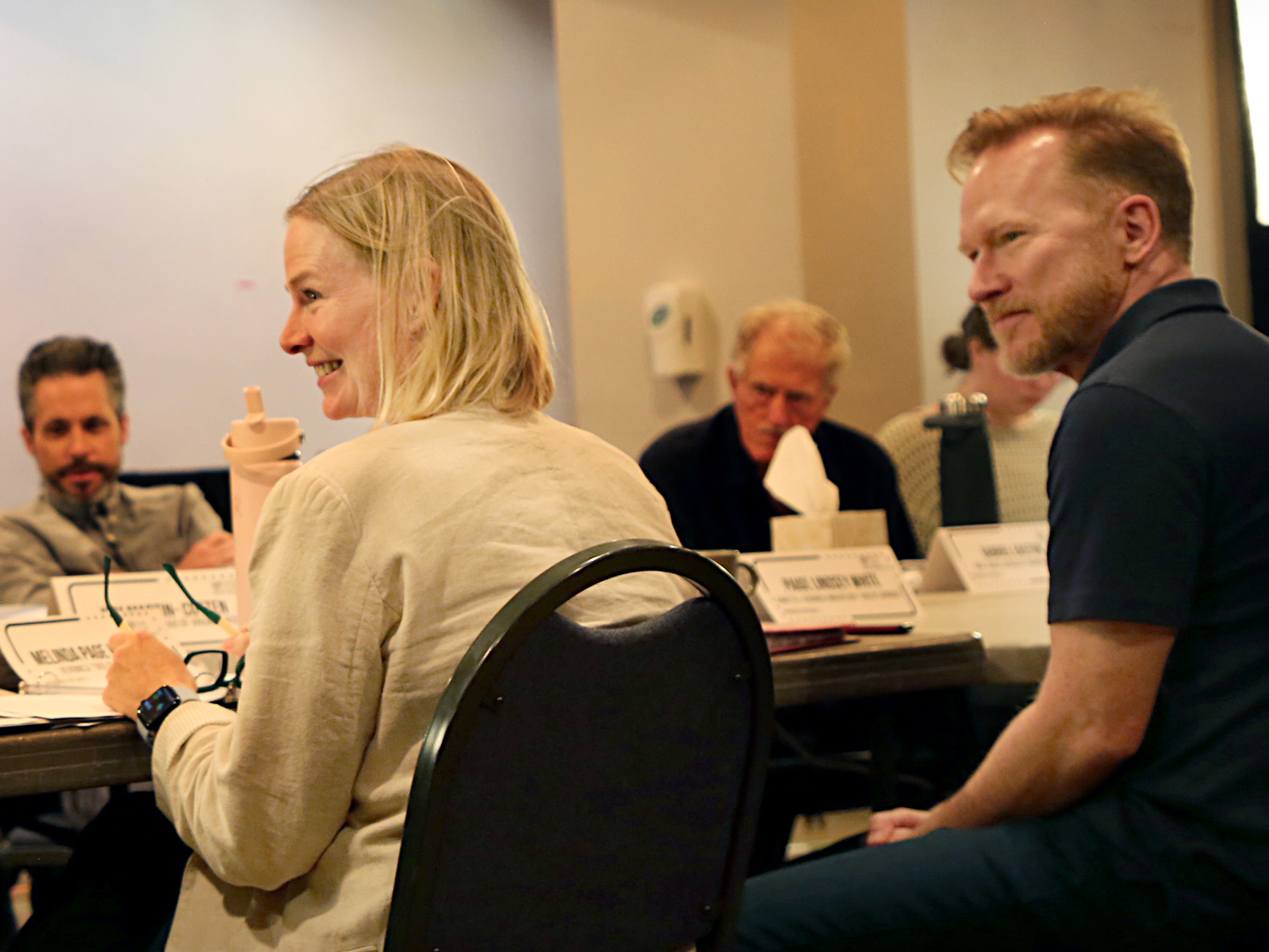 In Rehearsal: God of Carnage. In this first set of photos, actors Dan Donohue, Melinda Page Hamilton, Kim Martin-Cotten, Brian Vaughn and director Marco Barricelli in a table read on the first day and in rehearsal two weeks later for God of Carnage.